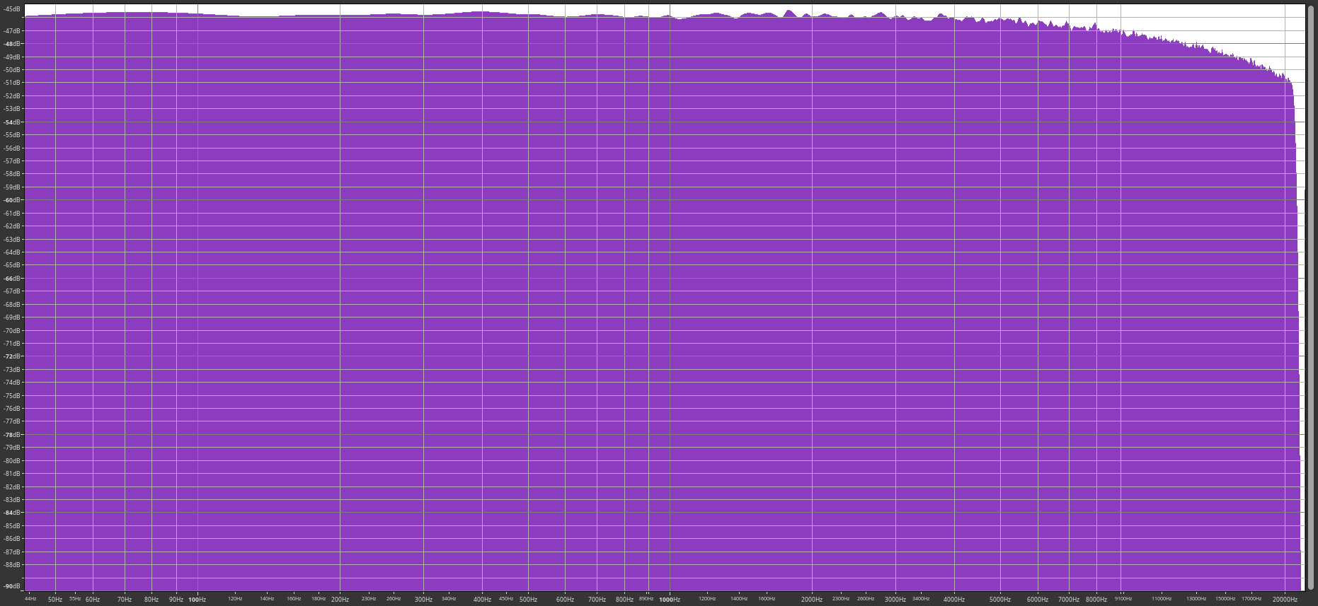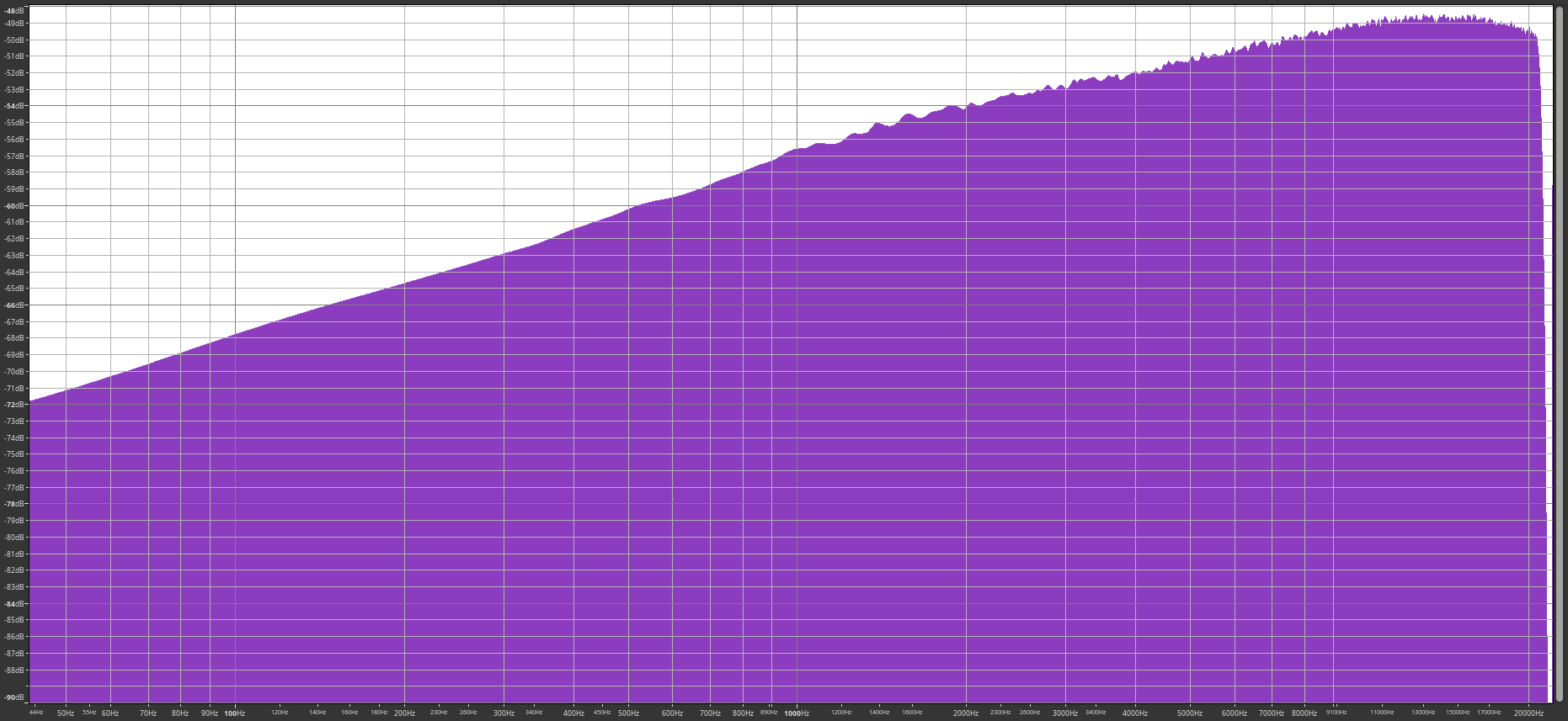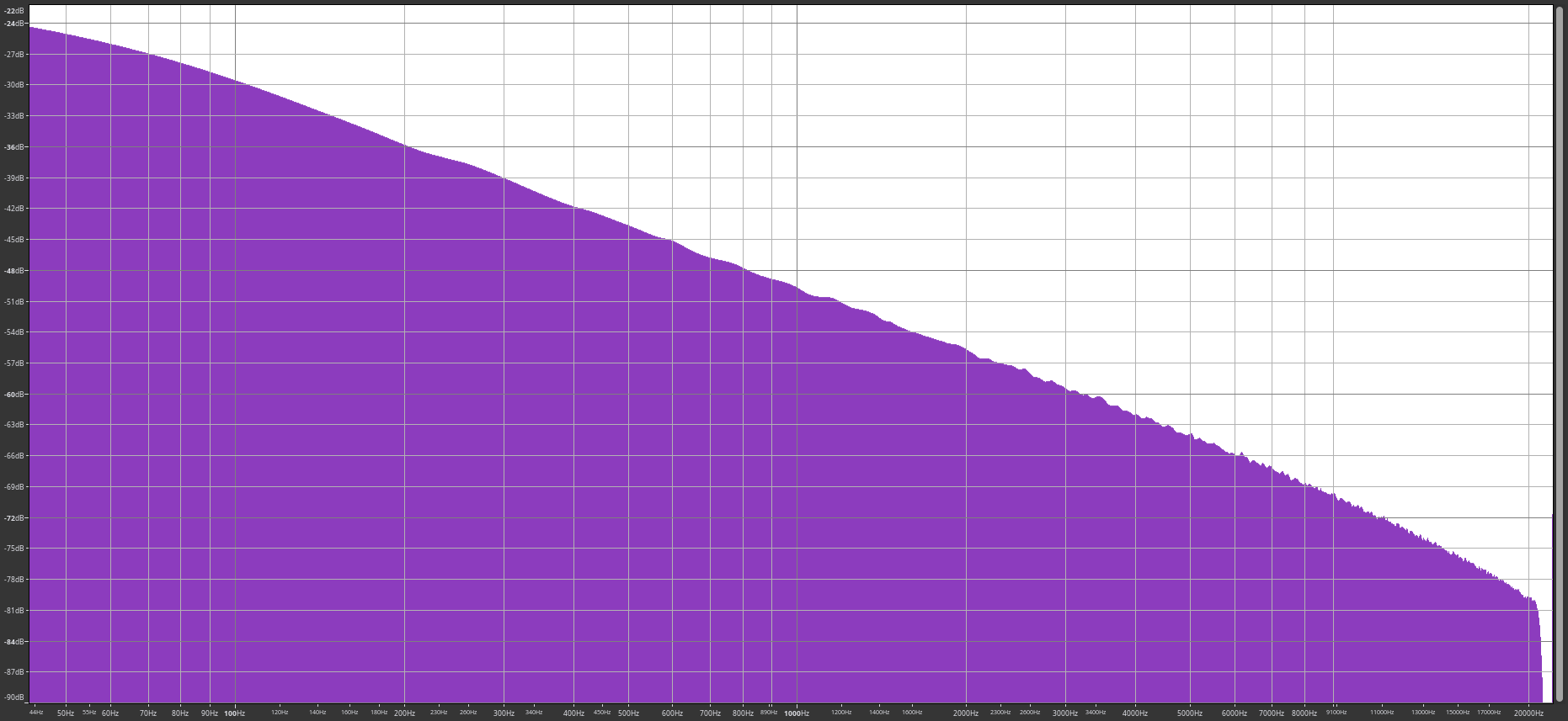 adding a couple caps to form active low pass filters on the inverting amplifiers for the white, blue and violet noise circuits which cut out frequencies above the audible range helped a lot, but the end result of all this is still a pretty substandard violet noise output. the low frequency behaviour is much closer to what i'd expected, but i think low frequency noise is still bleeding in from elsewhere, and i suspect i was a little overzealous in how close the extra low pass filters come to the upper audible range as the high end rolls off a couple db harder than it did before adding them. unfortunately since less high frequency noise = less low frequency noise here i'm stuck performing this balancing act, but at least it's audibly closer to real violet noise now even if the spectrum still looks like garbage.